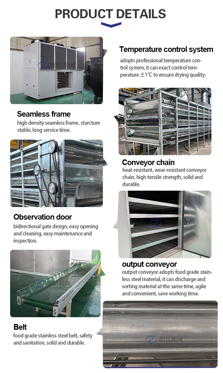 The briquette mesh belt dryer is a specially designed drying equipment for drying briquettes, pellets and other solid biomass materials. It operates with a mesh belt conveyor system, conveying the material through the mesh belt while hot air circulates to remove moisture. This charcoal mesh belt dryer is widely used in industries such as briquette production, biomass fuel manufacturing, and even in the food processing industry where uniform drying is required.