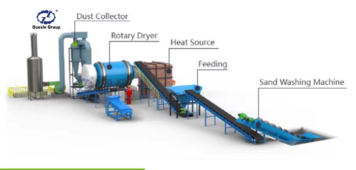 Coal slime rotary dryer is an industrial dryer used to remove moisture from sand. The rotary coal slime dryer is widely used in industries like construction, mining, foundries, and chemical processing to ensure that the coal slime achieves the proper dryness for further processing or use. The coal slime rotary dryer machine uses a rotating drum to process the sand, efficiently evaporating the moisture content through the use of hot air.