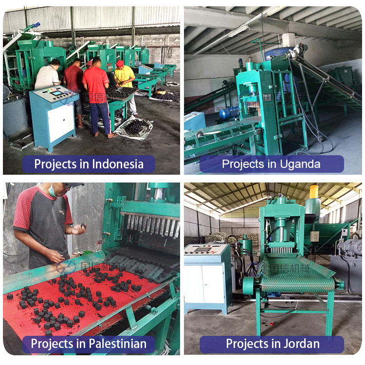 When the coconut shell charcoal tablet press machine is working, the machine will press and shape the carbonized raw materials, etc. It consists of a main engine, a PLC intelligent control system, a hydraulic pump, a hydraulic cylinder, a customized mold, and an output conveyor. Our shisha charcoal making machine uses a proximity sensor switch, and the mold height can be adjusted so that the mold has different heights. The machine can adjust the pressure according to different raw materials, and the molding effect is good.
