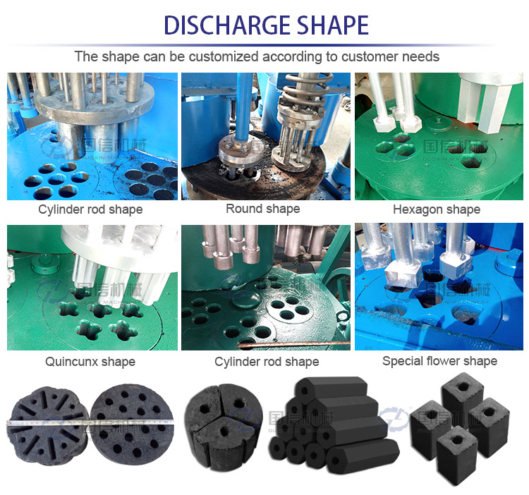 4. Honeycomb briquette machine: Equipped with an output conveyor belt, the mold can be replaced to make different shapes.
