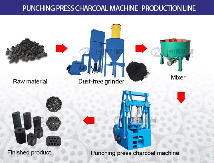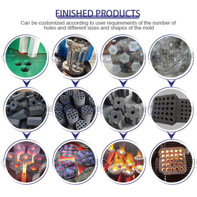 Honeycomb charcoal burns efficiently because the structure facilitates air circulation, resulting in a cleaner, more even burn. A honeycomb coal briquette production line involves several key stages that ensure high-quality, consistent charcoal for a variety of applications.Guoxin has mature honeycomb coal briquette production line.We can equip machines according to your needs.
