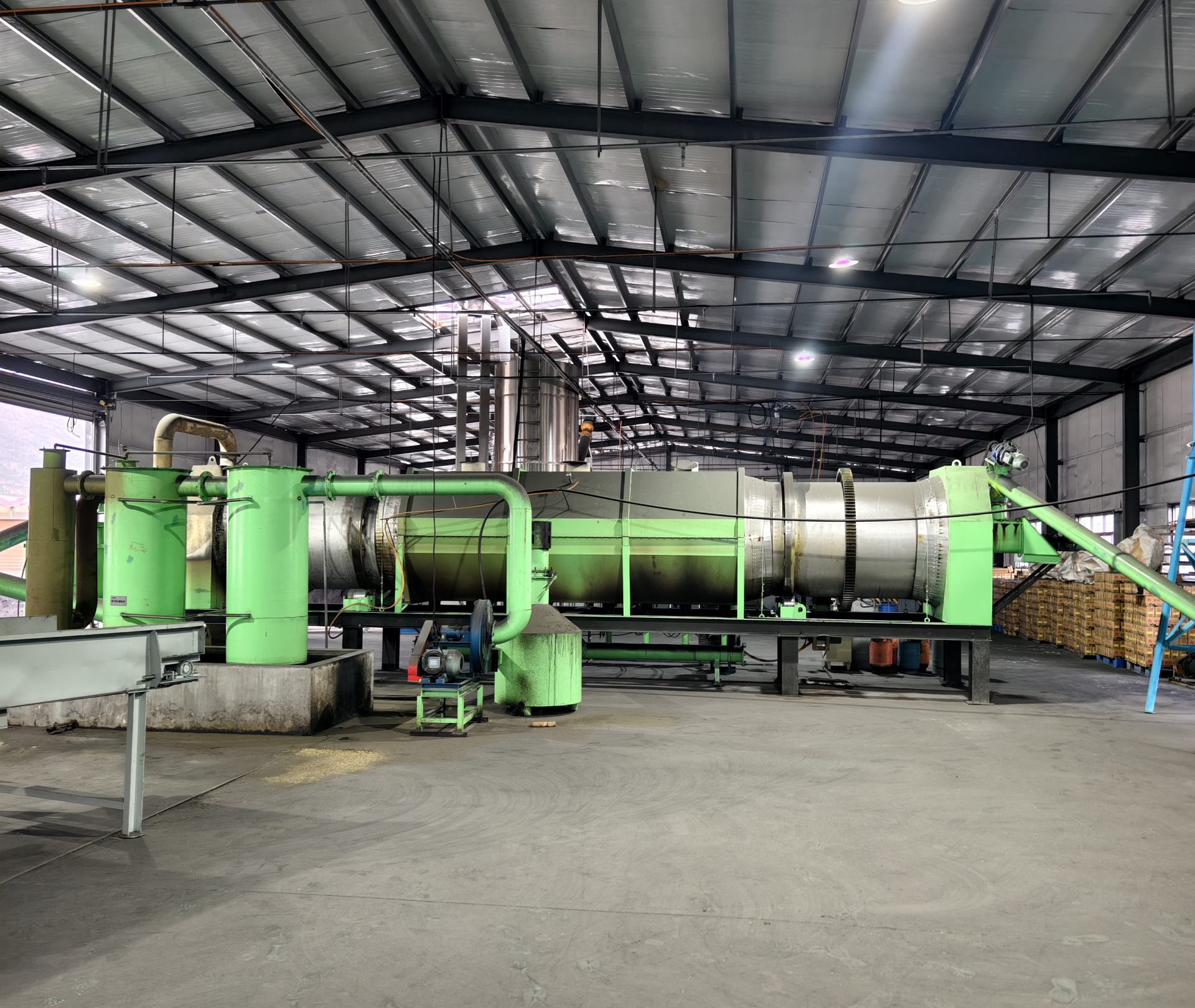 Carbonization: Raw timber is processed in a rotary kiln to produce high-fixed-carbon charcoal.