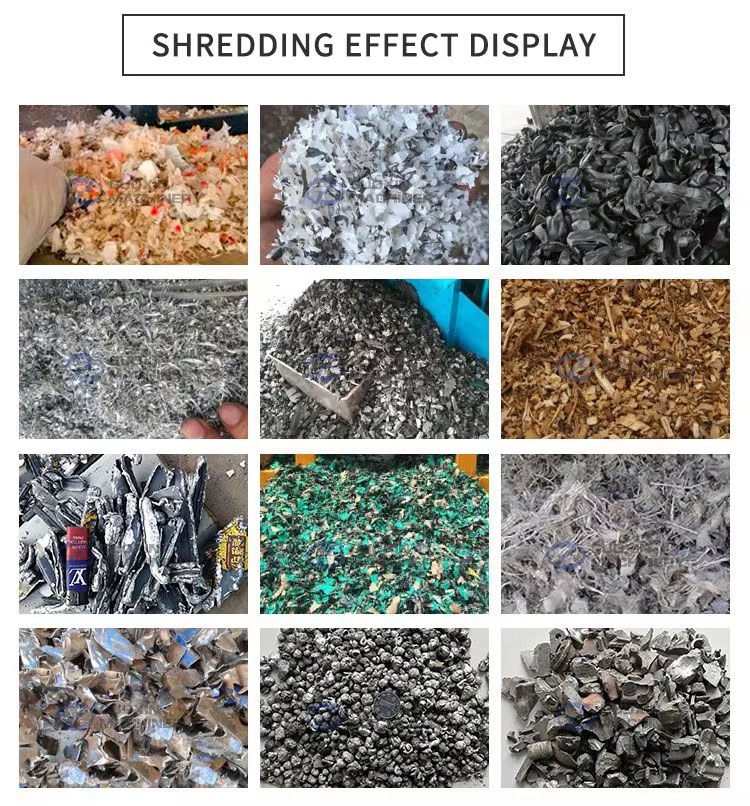 The Wood shredder has large application range,by replacing the blade(blades number, diameter, and thickness can be customized according different materials), It can shredding agriculture waste, household appliances waste shells, plastic waste barrels, scrap metal waste, cloth,textile,waste wood, waste cardboard,waste bottles,waste cans, waste tires.